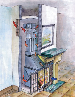 Descrierea de mai înainte se referă la șemineurile cu tiraj natural.